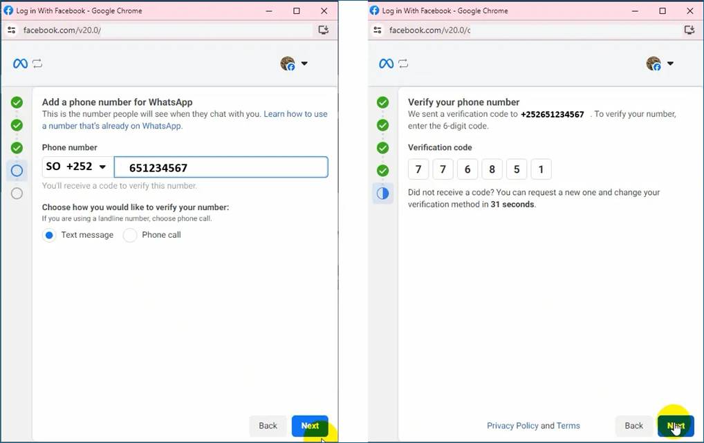 Chat using a WhatsApp number to test your WhatsApp chatbot.