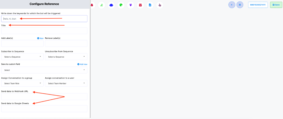 From the right-side panel, choose elements like Text, Image, Interactive, Google Sheet Data Fetch, etc., to build your flow step-by-step. - Save Your Bot Flow: