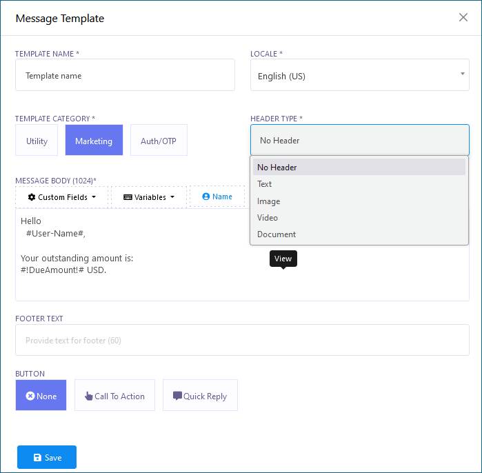 5. Insert the template variable in the message body if needed.